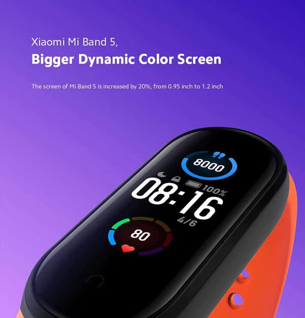 Xiaomi Mi Band 5 มาพร้อมจอแสดงผล Dynamic Color Screen ที่ใหญ่ขึ้นกว่าเดิม รองรับบริการชำระเงินแบบไร้สัมผัสผ่าน NFC มีฟีเจอร์สั่งถ่ายภาพเมื่อเชื่อมต่อกับสมาร์ทโฟน ปรับปรุงเซ็นเซอร์ต่างๆ มีโหมดติดตามการออกกำลังกาย 11 ชนิดกีฬา และโหมดติดตามสุขภาพสำหรับผู้หญิงโดยเฉพาะ