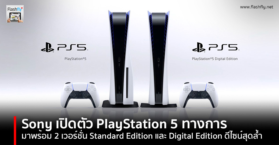ในที่สุด Sony เปิดตัว PlayStation 5 ทางการหลังจากที่ปล่อยให้เราเห็นเฉพาะตัวจอย DualSense controller มาพอสมควร โดย PlayStation 5 มีให้เลือกด้วยกัน 2 เวอร์ชั่นก็คือ Standard Edition ที่มาพร้อมกับช่องใส่แผ่น Blu-ray และ Digital Edition ที่ตัดช่อง Blu-ray ออกตัวเครื่องบางกว่าและมีราคาที่ถูกกว่า ออกแบบมาเพื่อซื้อเกมแบบ Digital Download โดยเฉพาะ