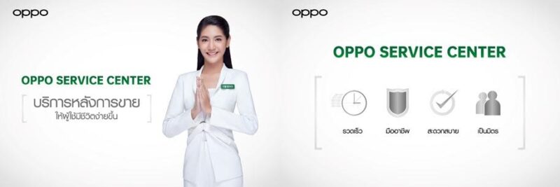 นอกจากนี้ OPPO ยังคำนึงถึงผู้ใช้งานด้วยบริการหลังการขายกับ OPPO Service Center ที่ช่วยให้ผู้ใช้งานมีชีวิตที่ง่ายขึ้น ด้วยบริการสุด Exclusive กับบริการซ่อมด่วนภายในหนึ่งชั่วโมง บริการรับส่งเครื่องซ่อมถึงมือลูกค้า ตรวจเช็กสภาพเครื่อง และอัปเกรดซอฟต์แวร์