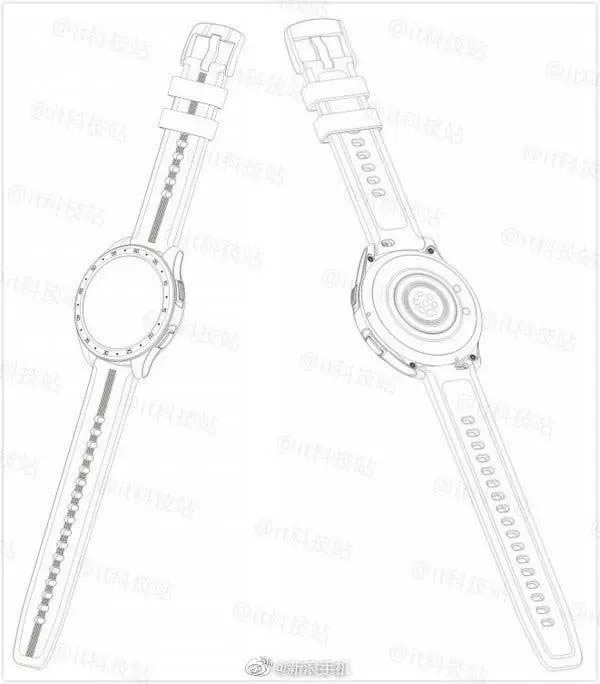 ภาพร่างดีไซน์ Vivo Watch ยังเผยให้เห็นตำแหน่งเซ็นเซอร์วัดอัตราการเต้นของหัวใจที่อยู่ด้านหลังตัวเรือน พร้อมหมุดแม่เหฃ็กสำหรับชาร์จแบตเตอรี่ (มีรายงานว่ารองรับ 5W) ส่วนสายรัดข้อมือเป็นแบบเข็มขัดเหมือนสายของนาฬิกาข้อมือที่คุ้นเคยกันดี