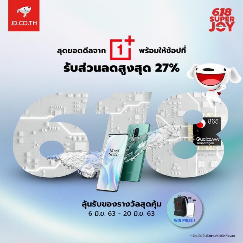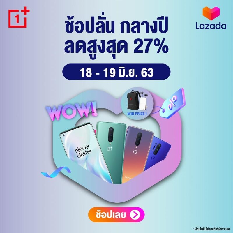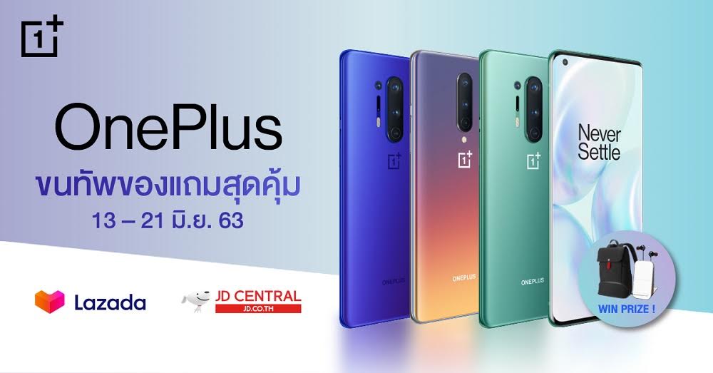 OnePlus แบรนด์สมาร์ตโฟนสุดพรีเมียม ที่ได้เปิดตัวสมาร์ตโฟนแฟล็กชิพรุ่นใหม่ล่าสุดในเดือนพฤษภาคมที่ผ่านมา ด้วยกันสองรุ่นคือ OnePlus 8 และ OnePlus 8 Pro ที่มาในคอนเซ็ปต์ Lead with Speed เร็วแรง ทรงพลัง ในดีไซน์ที่สวยงาม และในครั้งนี้ทาง OnePlus ขนทัพของแถมสุดคุ้ม มอบดีลสุดพิเศษบนช่องทางออนไลน์ใน JD Central และ LAZADA สำหรับผู้ที่สั่งซื้อสมาร์ตโฟนเรือธง OnePlus 8 Series ที่มาพร้อมเทคโนโลยีสุดล้ำ ด้วยหน้าจอที่สวยที่สุดกับค่ารีเฟรชเรทสูงสุดถึง 120 Hz พร้อมทั้งลุ้นรับของแถมสุดพรีเมียม และโปรโมชั่นกลางปีสุดพิเศษครั้งใหญ่ ในวันที่ 13 – 21 มิ.ย. 63 นี้