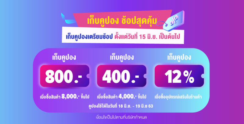 • คูปองส่วนลด 800 บาท เมื่อซื้อครบ 8,000 บาท (ยอดหลังหักส่วนลด)