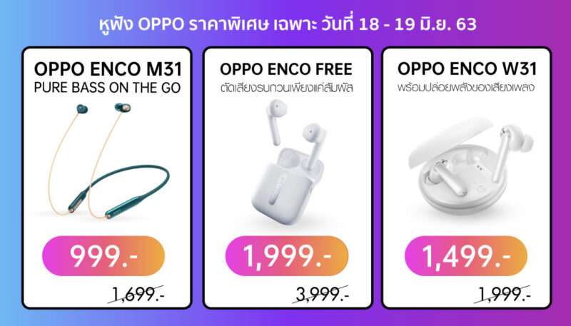 • OPPO Enco M31 พิเศษ 999 บาท จากปกติ 1,699 บาท