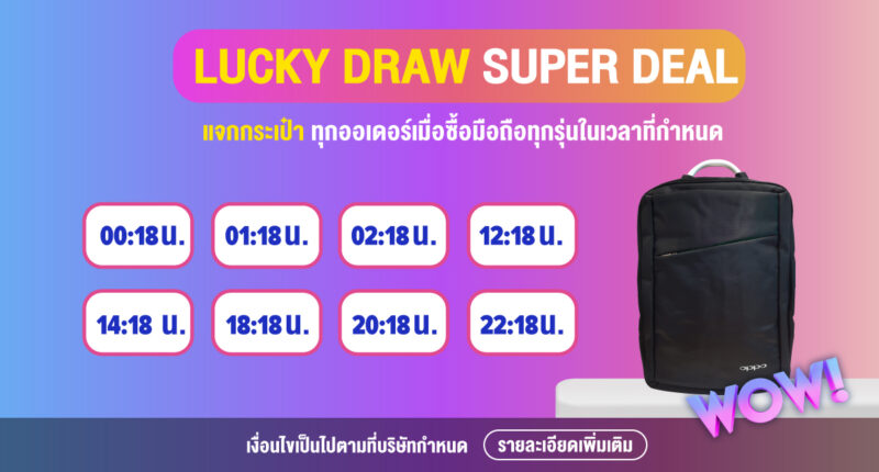 เท่านั้นยังไม่พอ! OPPO เพิ่มกิจกรรมพิเศษ มอบความสนุกสำหรับขาช้อป เพียงซื้อสินค้า OPPO ผ่าน OPPO Official Store ในช่วงเวลา 0.18, 1.18, 2.18, 12.18, 14.18, 18.18, 20.18 และ 22.18 รับฟรี! กระเป๋าพรีเมียม