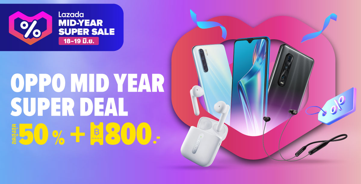 OPPO มอบโปรโมชั่นสุดคุ้มในแคมเปญ OPPO MID YEAR SUPER DEAL ทั้งลดทั้งแถม เมื่อซื้อสมาร์ทโฟน OPPO หรืออุปกรณ์เสริม ตั้งแต่วันที่ 18 – 19 มิถุนายนนี้ ที่ OPPO Official Store ใน Lazada โดยโปรแรงสุดคุ้มห้ามพลาด มีรายละเอียด ดังนี้