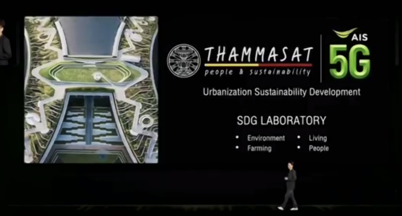 5G กับการพัฒนา สิ่งแวดล้อม การเกษตร และการพัฒนาเมืองอย่างยั่งยืน โดยผนึกพันธมิตรกับมหาวิทยาลัยธรรมศาสตร์ สร้าง SDG Lab ในพื้นที่ 100 ไร่ ใน อุทยานการเรียนรู้ป๋วย 100 ปี หรือสวนป๋วย ณ มหาวิทยาลัยธรรมศาสตร์ ศูนย์รังสิต ต้นแบบการรณรงค์ให้คนไทยเห็นความสำคัญของการดูแลสิ่งแวดล้อมที่เป็นรูปธรรมที่สุดแห่งหนึ่ง”
