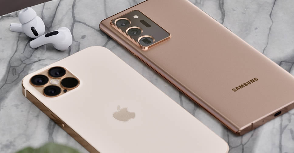 ดีไซน์เนอร์ Aziz Ghaus ได้สร้างคอนเซ็ปต์ iPhone 12 Pro ออกมาในโทนสีทองแบบเดียวกับ Galaxy Note 20 Ultra และยังวางทั้งคู่ไว้ใกล้กัน โดยเรือธงของ Samsung ดูมีขนาดใหญ่กว่า เพราะมีข่าวว่า Galaxy Note 20 Ultra จะมาพร้อมจอแสดงผล ขนาด 6.9 นิ้ว ขณะที่ iPhone 12 Pro Max ถูกอ้างว่าจะมีขนาดหน้าจอ 6.7 นิ้ว