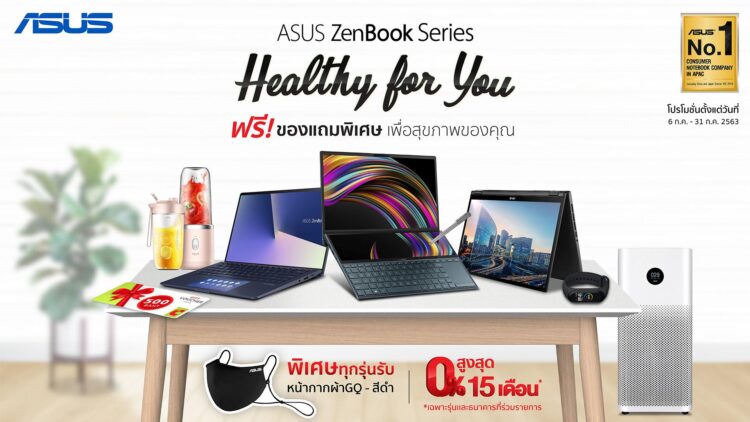 ASUS ส่งมอบความห่วงใยแก่ลูกค้า Asus ZenBook Series ปล่อยโปรโมชั่น ‘Healthy For You’ ฟรี! ของแถมเพื่อสุขภาพ พร้อมส่วนลด และโปรโมชั่นผ่อน 0% 15 เดือน