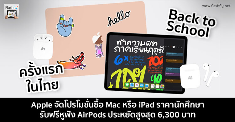 วันนี้ Apple เปิดแคมเปญใหญ่ต้อนรับเปิดเทอม Back to School ครั้งแรกในประเทศไทยซื้อ Mac หรือ iPad ราคานักศึกษา รับฟรีหูฟัง AirPods ประหยัดสูงสุด 6,300 บาท พร้อมส่วนลด AppleCare+ อีก 20%