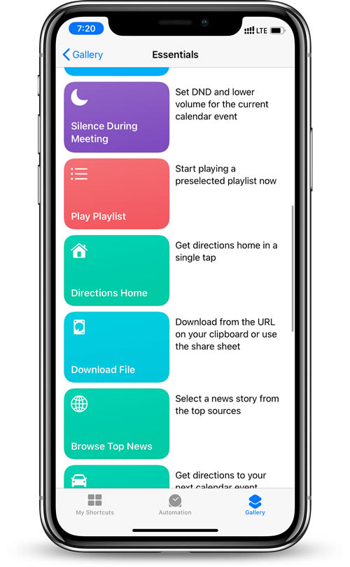 Siri Shortcut ในเมนู Gallery ได้รับการออกแบบ User Interface ใหม่ แสดงรูปย่อขนาดใหญ่ขึ้น พร้อมข้อมูลเพิ่มเติม และยังใช้สีสันช่วยให้แยกแยะคำสั่งทางลัดที่แตกต่างกัน