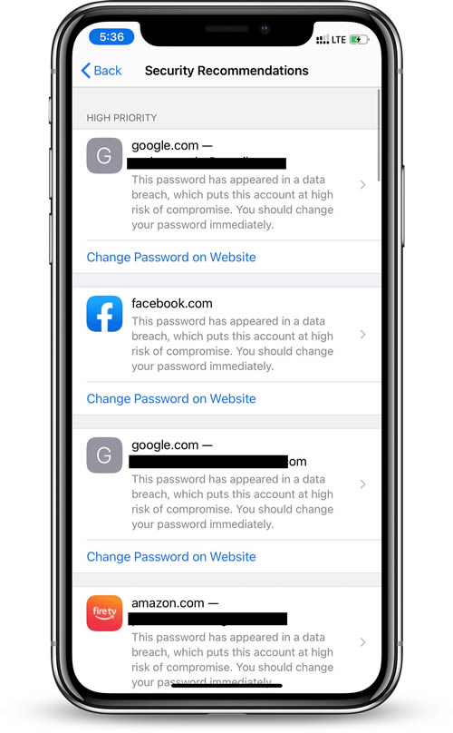 iOS 14 สามารถเตือนผู้ใช้งานถึงการรั่วไหลของข้อมูลและรหัสผ่าน พร้อมให้ Link เพื่อเข้าไปแก้ไขรหัสผ่านบนเว็บไซต์