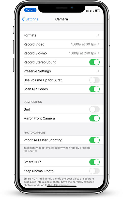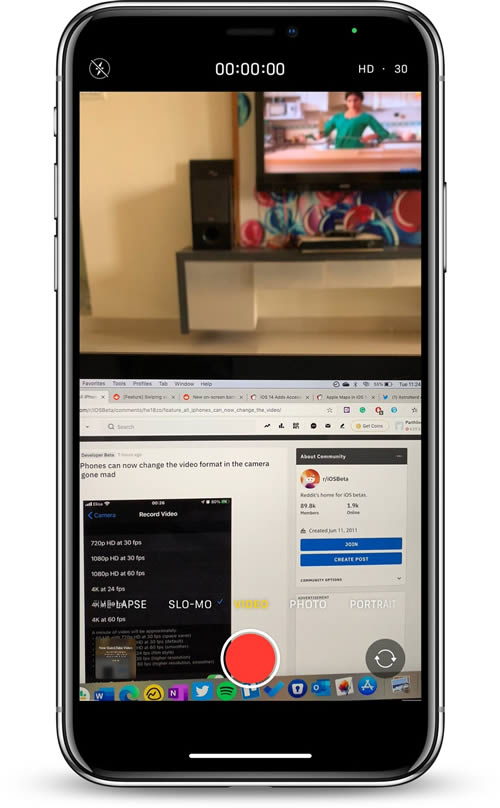 iPhone ใน iOS 14 สามารถเปลี่ยนความละเอียดวิดีโอและรูปแบบวิดีโอในแอพกล้องได้แล้ส โดยแตะที่ความละเอียดและเฟรมเรทวิดีโอ ตรงมุมบนขวา แล้วสลับไปใช้รูปแบบอื่นตามตังเลือกที่มีให้