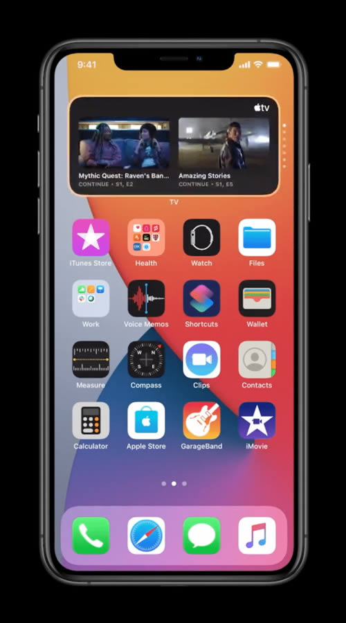 หน้าจอโฮมใน iOS 14 รองรับการเพิ่มวิดเจ็ตแล้ว แต่ที่ล้ำกว่านั้นคือ สามารถวางวิดเจ็ตซ้อนกันได้ในหน้าต่างเดียวกัน โดยระบบอัจฉริยะของ iPhone จะเลือกแสดงวิดเจ็ตขึ้นมาให้อัตโนมัติตามตามเวลา สถานที่ และกิจกรรมที่ทำอยู่ เช่น แสดงวิดเจ็ต Maps ในตอนเช้า แสดง Calendar ในตอนกลางวัน และ Health ในช่วงเย็น เป็นต้น