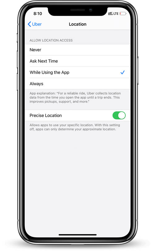 เพื่อความปลอดภัยและความเป็นส่วนตัว iOS 14 จะเปิดเผยพิกัดตำแหน่งโดยประมาณเท่านั้น แต่ผู้ใช้งานก้สามารถเปิดให้ iPhone ระบุพิกัดอย่างแม่นยำถูกต้องได้ เพื่อใช้งานแอพที่ต้องการความถูกต้องของตำแหน่ง อย่างเช่น แอพสั่งอาหาร เป็นต้น โดยเข้าไปเปิดหรือปิดฟีเจอร์ Precise Location ในการตั้งค่า Location