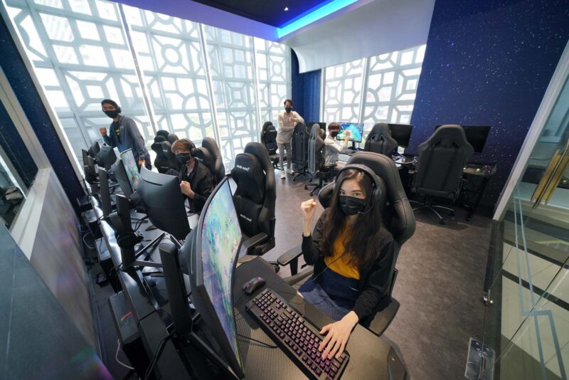 7. สตูดิโอส่วนตัวพร้อมเกมมิ่งพีซีและอุปกรณ์เกมมิ่งเกียร์ 2 ห้อง รองรับได้ห้องละ 10 คน ให้คอเกมเมอร์รวมกลุ่มซ้อมกลวิธีและแผนการเล่น เตรียมพร้อมก้าวสู่การเป็นนักกีฬาอีสปอร์ตตัวจริง