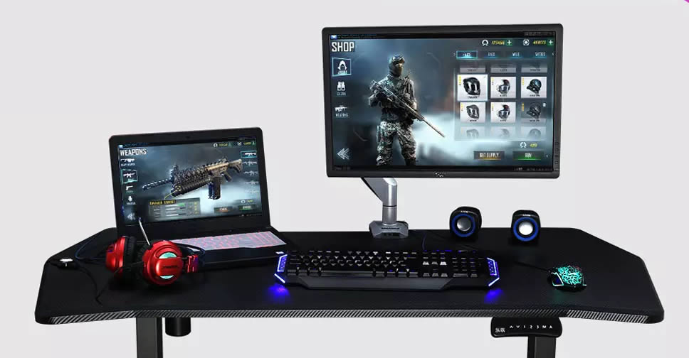 โต๊ะคอมพิวเตอร์ Loctek Electric Standing Desk ออกแบบมาอย่างโฉบเฉี่ยวเหมาะสำหรับเกมเมอร์ บนพื้นโต๊ะเป็นลายคาร์บอนไฟเบอร์ รองรับน้ำหนักสูงสุด 70 กิโลกรัม และมีจุดเด่นที่สามารถปรับระดับความสูงได้ โดยมีปุ่มควบคุมอยู่ทางขวามือ พร้อมจอแสดงผลบอกระดับความสูง สามารถปรับความสูงได้ในช่วง 71 – 121 เซนติเมตร