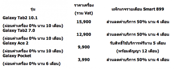 ทรูมูฟ เอช ผู้นำบริการ 3G และผู้นำด้านสมาร์ทโฟน เปิดตัวซัมซุง 4 รุ่นใหม่ล่าสุดจากตระกูล Galaxy ได้แก่ แท็บเล็ต 2 รุ่นและโทรศัพท์มือถือ 2 รุ่น ขยายฐานลูกค้าทั้งกลุ่มวัยรุ่น และคนเริ่มต้นทำงาน ชู 3 กลยุทธ์เด่นเหนือกว่าทั้งโปรโมชั่นสุดคุ้ม ส่วนลด 50% นาน 4 เดือน เมื่อเลือกใช้แพ็กเกจ 899 บาท หรือรับสิทธิใช้บริการฟรีนานสูงสุด 5 เดือน พร้อมผ่อนค่าเครื่อง 0% นานสูงสุด 10 เดือน เต็มที่กับบริการ 3G+ บนเครือข่ายที่แรงและเร็วที่สุดในประเทศไทย เร็วสูงสุด 42 Mbps* พร้อมสัมผัสประสบการณ์ สุดยอดกับแอพพลิเคชั่นเด็ดๆ ของทรูมูฟ เอช ตอบสนองทุกไลฟ์สไตล์ ทั้งดูหนัง ฟังเพลงและตรวจสอบบริการต่างๆ ในกลุ่มทรูด้วยตัวเอง เป็นเจ้าของสมาร์ทโฟนและผลิตภัณฑ์สุดล้ำจากซัมซุงได้ที่ร้านทรูช้อป กว่า 250 สาขาทั่วไทย