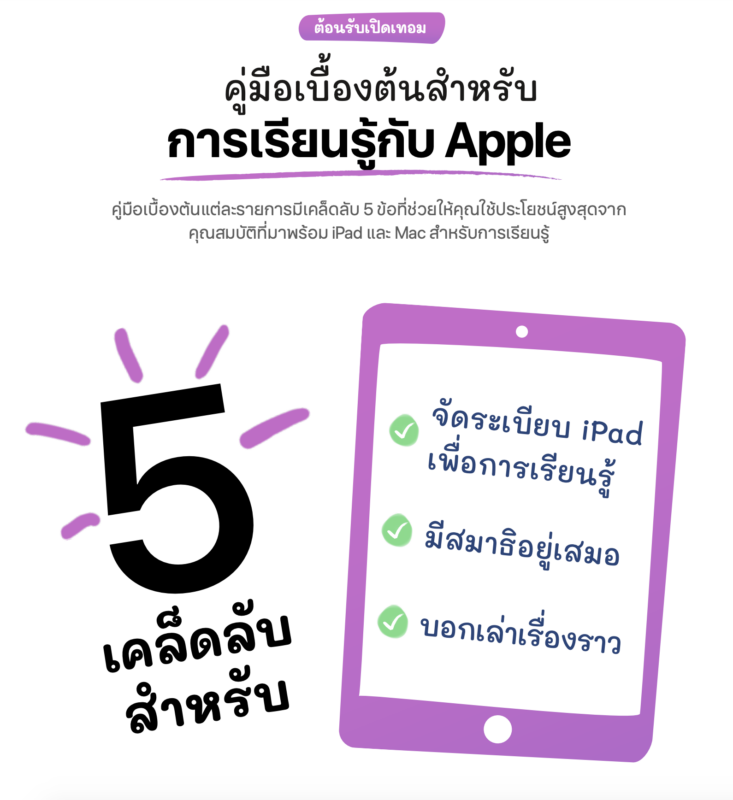 Apple ใจดี!! แจกฟรีคู่มือเบื้องต้นสำหรับการเรียนรู้กับ Apple เพื่อต้อนรับเปิดเทอม ดาวน์โหลดได้ที่นี่
