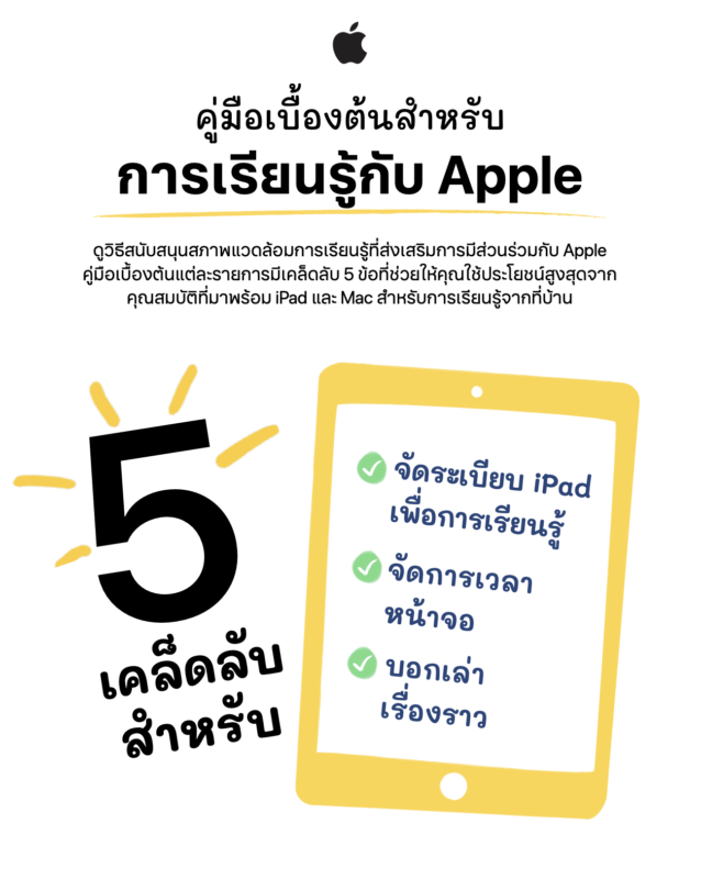 ดาวน์โหลดคู่มือได้ที่ https://education-static.apple.com/geo/th/learning-with-apple/apple-quick-guides.pdf