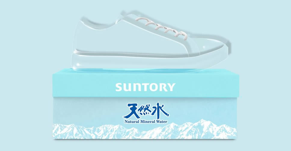 คอนเซ็ปต์รองเท้าผ้าใบที่ได้รับแรงบันดาลใจมาจากเครื่องดื่มน้ำแร่ของ Suntory แม้แต่บัญชี Twitter @suntory_tennen ยังต้องนำไปแชร์ต่อ