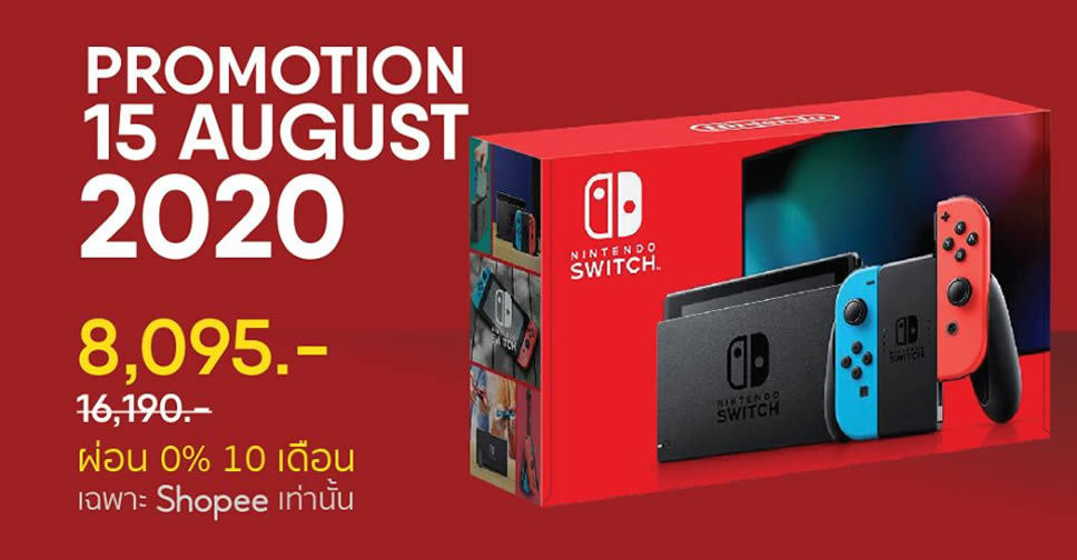 Nintendo Switch ราคาสุดพิเศษเพียง 8,095 บาท จากทางร้าน NADZ จะเปิดให้ทำรายการสั่งซื้อผ่านทาง Shopee เฉพาะวันที่ 15 สิงหาคม 2563 ตั้งแต่เวลา 00.00 น. – 23.59 น.