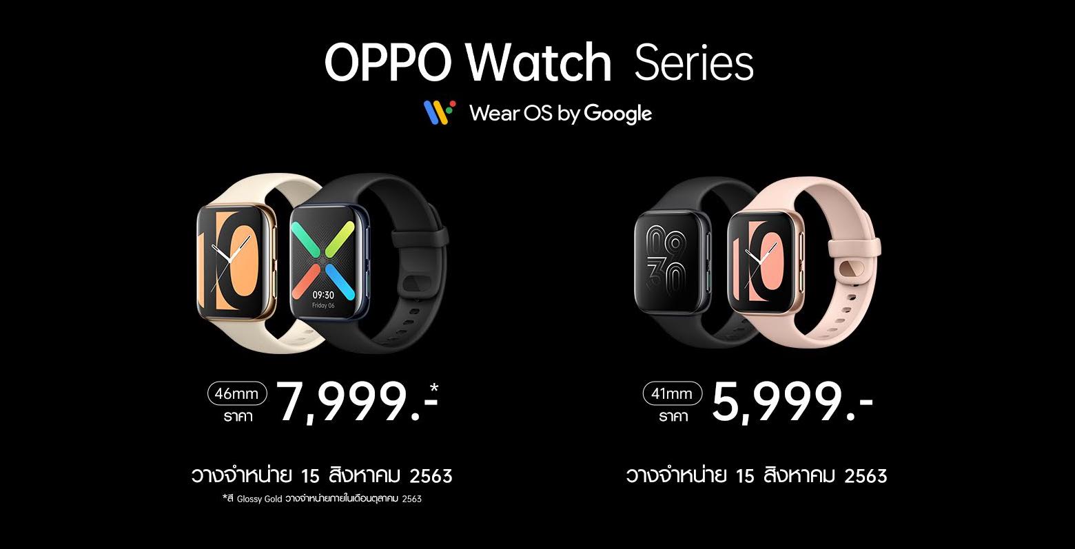OPPO ประกาศเปิดตัว OPPO Watch Series ผลิตภัณฑ์ Smartwatch ครั้งแรกจาก OPPO ภายใต้สโลแกน “เชื่อมต่อทุกไลฟ์สไตล์ที่เป็นคุณ” โดย OPPO Watch Series ถือเป็นผลิตภัณฑ์ที่มีความผสมผสานระหว่างดีไซน์แฟชั่นและเทคโนโลยีได้อย่างลงตัว ไม่ว่าจะเป็นดีไซน์ที่บางเบา สวมใส่ถนัดมือ พร้อมหน้าจอ 3D Dual-Curved Display ครั้งแรกของโลก ขับเคลื่อนด้วย Wear OS by Google พร้อมทั้งฟีเจอร์ AI Outfit แมทซ์ทุกลุคทุกสไตล์ และ Watch VOOC Flash Charging ระบบชาร์จไวที่จะทำให้คุณสนุกไปกับการใช้งานได้ทั้งวัน โดย OPPO Watch Series มีทั้งหมด 2 รุ่นด้วยกัน คือ OPPO Watch 41mm ในราคา 5,999 บาท และ OPPO Watch 46mm ในราคา 7,999 บาท พร้อมมอบความสะดวกสบายและประสบการณ์การเชื่อมต่ออัจฉริยะแล้ววันนี้