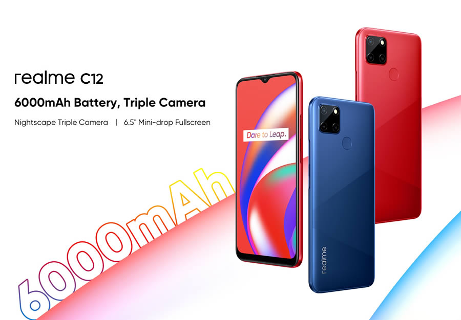 realme เปิดตัวสมาร์ทโฟน C12 อย่างทางการในประเทศอินโดนีเซีย โดยชูจุดเด่นที่แบตเตอรี่ขนาดใหญ่ 6000mAh สามารถใช้งานเป็น Power Bank ชาร์จแบตเตอรี่ให้อุปกรณ์อื่นได้ และรองรับการชาร์จ 10W (5V, 2A) ผ่านพอร์ตเชื่อมต่อ Micro-USB