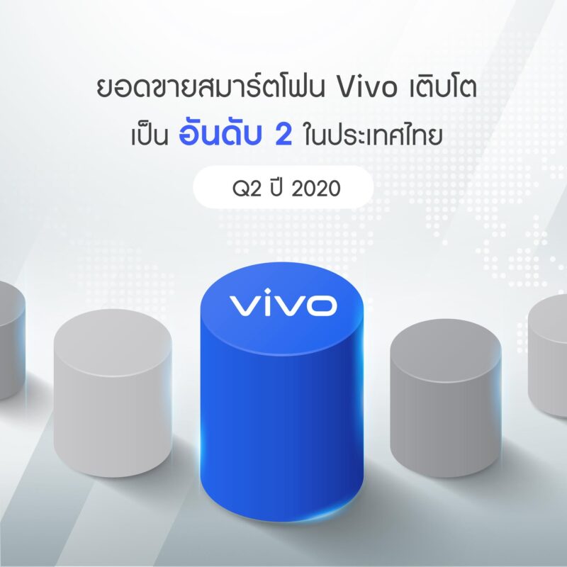 Canalys เผยข้อมูลยอดขายสมาร์ตโฟนในประเทศไทย (นับจำนวนเครื่อง) ในช่วงไตรมาสที่ 2 ของปี 2563 Vivo ครองยอดขายขึ้นเป็นอันดับ 2 ในประเทศไทย โดยมีอัตราการเติบโตถึง 26%