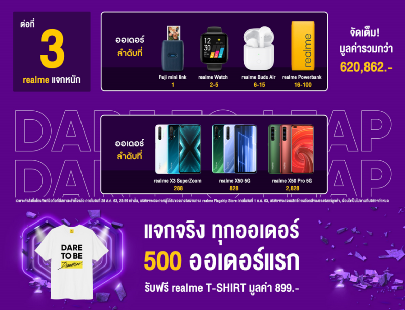 ● ออเดอร์ลำดับที่ 1 – 500: realme T-Shirt มูลค่า 899 บาท จำนวน 500 รางวัล