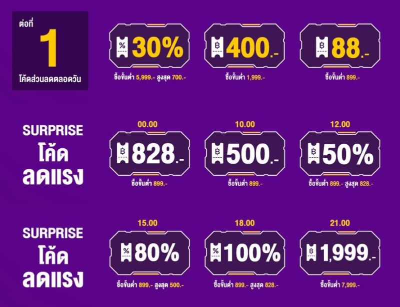 Surprise voucher แจก Voucher พิเศษสุดๆ จำนวนจำกัด ตามช่วงเวลา ดังนี้