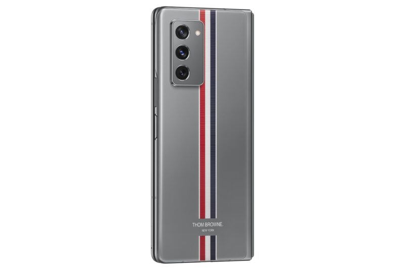 การผสมผสานระหว่างนวัตกรรมสมาร์ทโฟนแห่งอนาคตกับดีไซน์อันเป็นเอกลักษณ์ของดีไซน์เนอร์ชาวนิวยอร์กครั้งนี้ ทำให้ Galaxy Z Fold2 Thom Browne Edition เป็นที่จับตามอง พร้อมได้รับความสำเร็จเป็นอย่างสูงทั้งในไทยและต่างประเทศ โดยในคอลเลคชันประกอบไปด้วย Galaxy Z Fold2 5G สุดยอดนวัตกรรมที่รวมประสบการณ์ของแท็บเล็ตและความคล่องตัวของสมาร์ทโฟนไว้ในเครื่องเดียว, สมาร์ทวอทช์ Galaxy Watch3, หูฟัง Galaxy Buds Live และ Accessories ต่างๆ ซึ่งทั้งหมดมาในดีไซน์สีเทาพร้อมแถบสีน้ำเงินและสีแดงสุดไอคอนิกของ Thom Browne