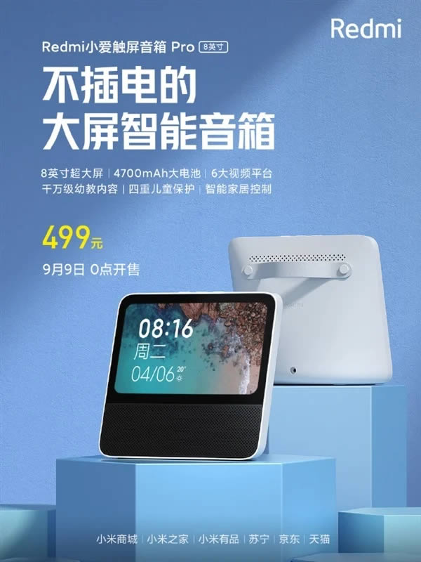 Redmi XiaoAI Touchscreen Speaker Pro จะเริ่มวางจำหน่ายในประเทศจีน ตั้งแต่วันที่ 9 กันยายน 2020 เป็นต้นไป ในราคา 499 หยวน หรือราว 2,299 บาท