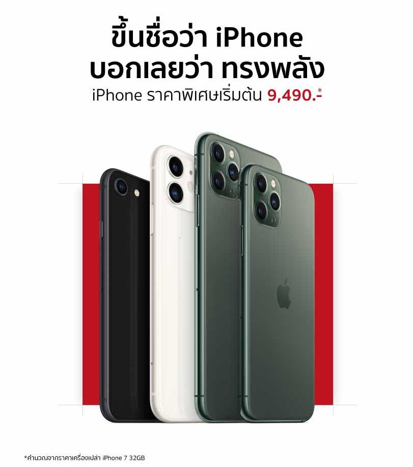 iPhone กับราคาที่น่าประทับใจ ราคาเริ่มต้น 9,490 บาท วันนี้ – 30 กันยายน 2563 เท่านั้น