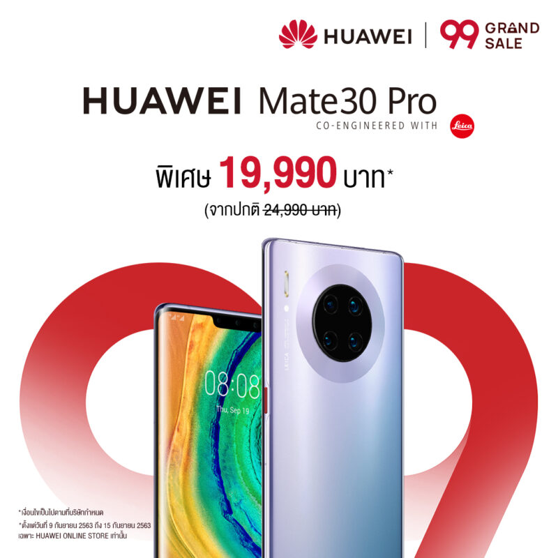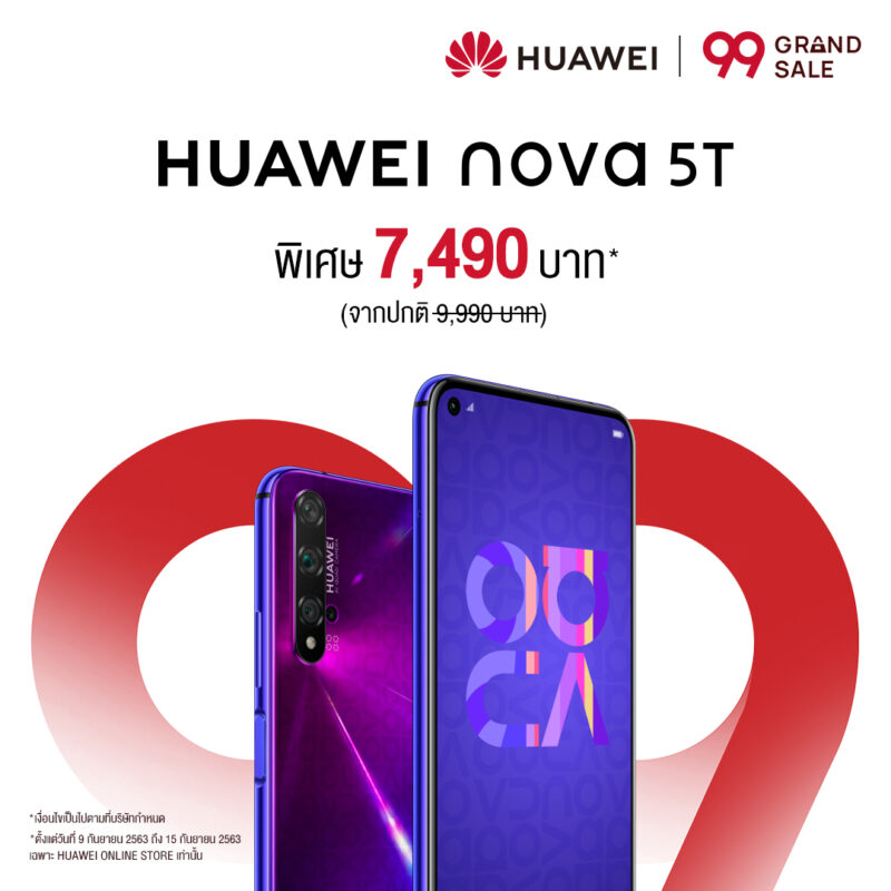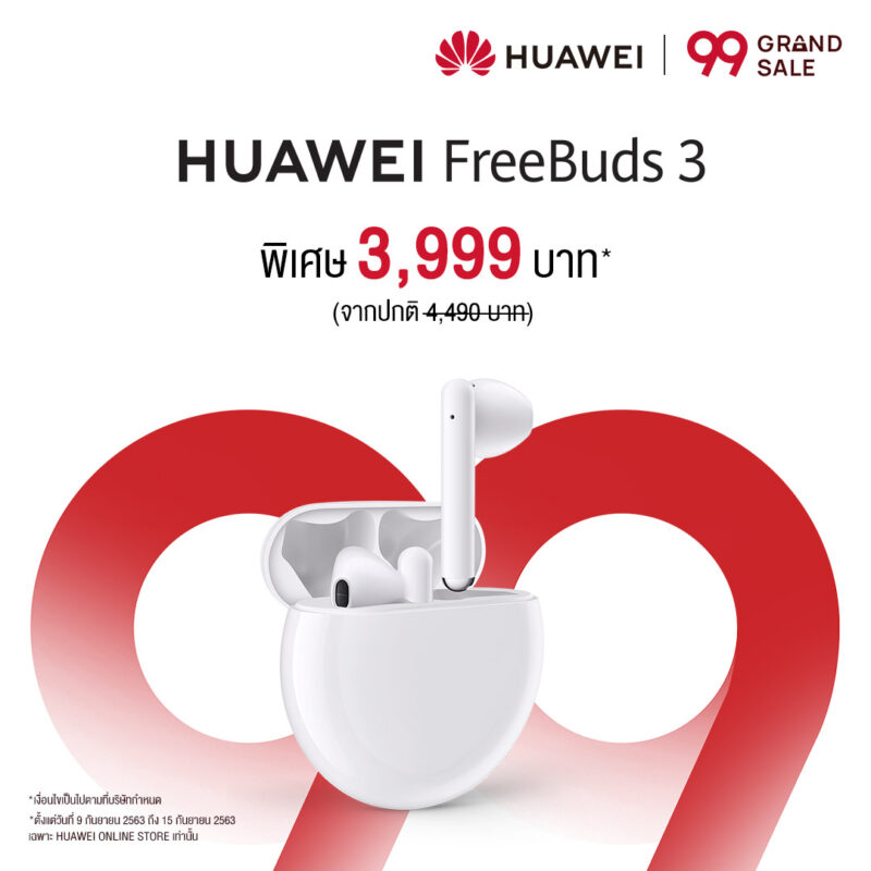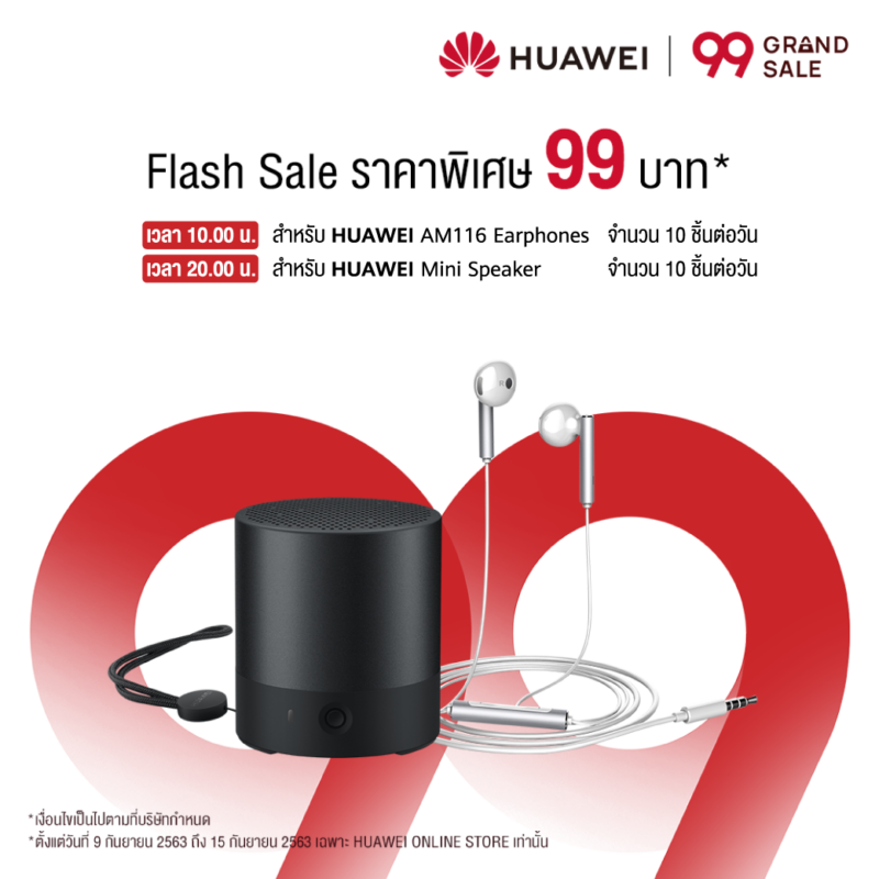 หัวเว่ย คอนซูมเมอร์ บิสสิเนส กรุ๊ป (ประเทศไทย) จัด ‘HUAWEI 99 Grand Sale’ งานเซลครั้งยิ่งใหญ่ของปี ระหว่างวันที่ 9 – 15 กันยายน 2563 นี้ เอ็กซ์คลูสีฟบนหัวเว่ยออนไลน์สโตร์เท่านั้น:  https://shop.huawei.com/th อัดแน่นด้วยโปรโมชั่นส่วนลด ของสมนาคุณ และข้อเสนอสุดพิเศษเฉพาะช่วงเวลาทุกวัน พบกับ Flash Sale สินค้าราคาพิเศษที่ลดราคาเหลือเพียง 99 บาท โดยจัด Flash Sale ถึง 2 รอบต่อวัน และส่วนลดผลิตภัณฑ์ยอดนิยม ที่จับคู่มาพร้อมของสมนาคุณสุดพิเศษ ออนท็อปให้ผู้ใช้เพิ่มเติมจากส่วนลดในบางรายการ รวมถึงคูปองส่วนลดสำหรับสินค้าราคาปกติแบบจุใจ