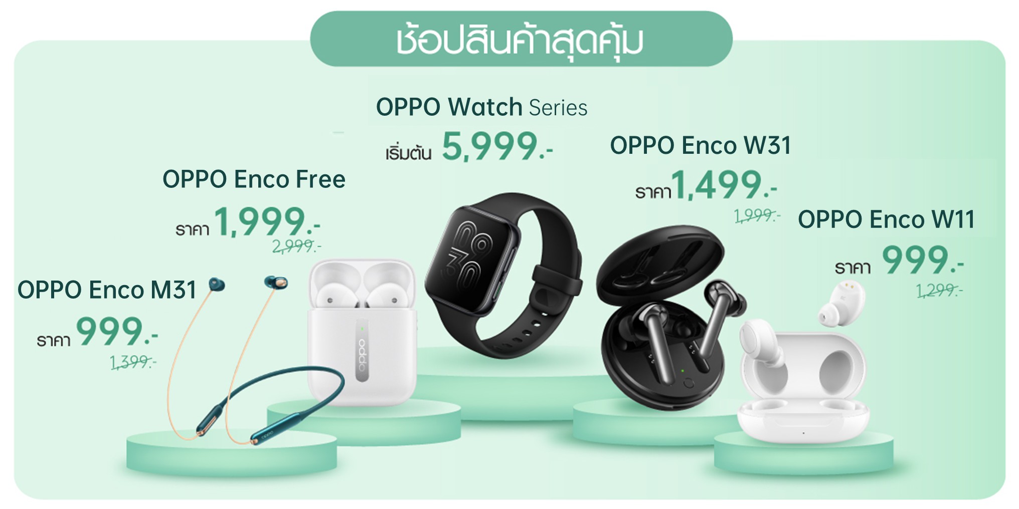 นอกจากนี้ สามารถเป็นเจ้าของหูฟัง OPPO ได้ในราคาสุดคุ้ม โดย