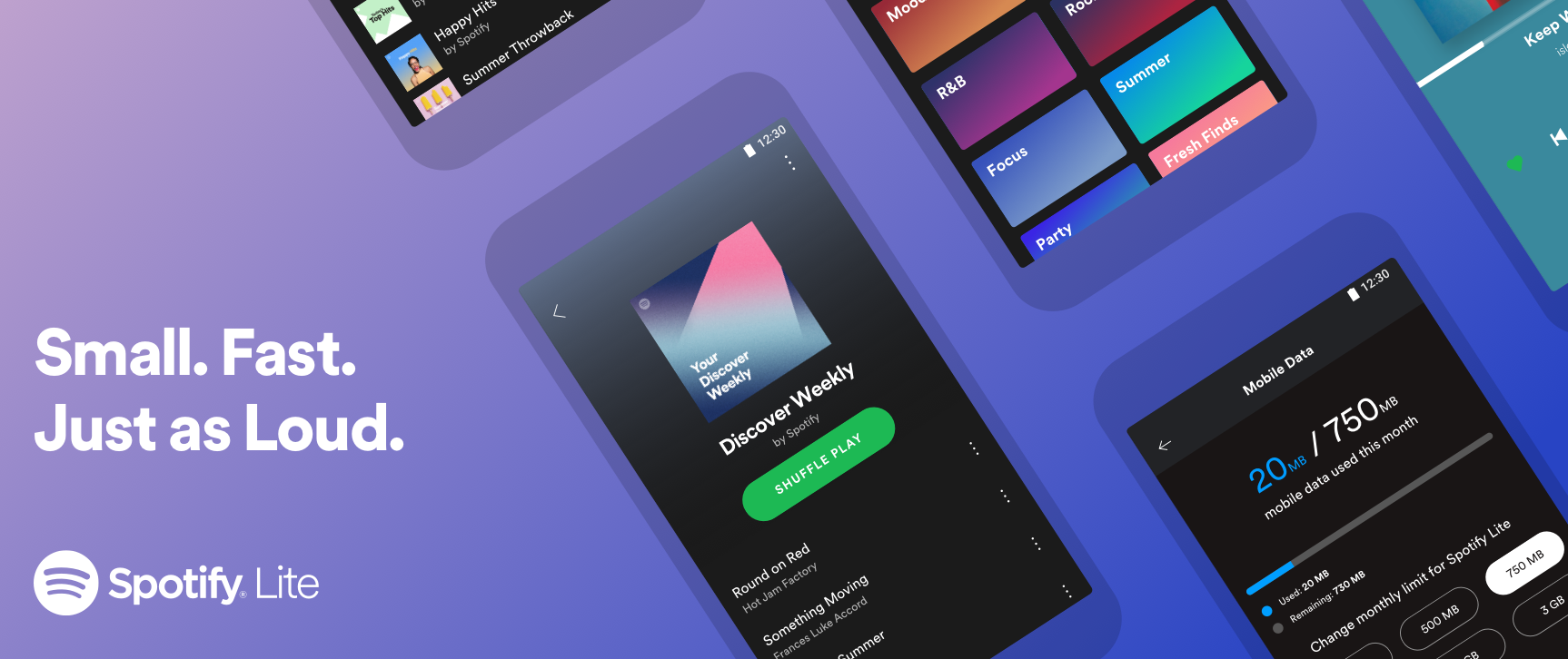 - Spotify Lite มาพร้อมกับความสามารถในการกำหนดขีดจำกัดการจัดเก็บข้อมูล และแจ้งเตือนเมื่อคุณใช้ถึงค่าที่ตั้งไว้ ในระบบนี้ผู้ฟังสามารถให้ความสนใจกับการค้นหาเพลงโปรดใหม่ๆ โดยไม่ต้องกังวลกับการจัดเก็บข้อมูล
