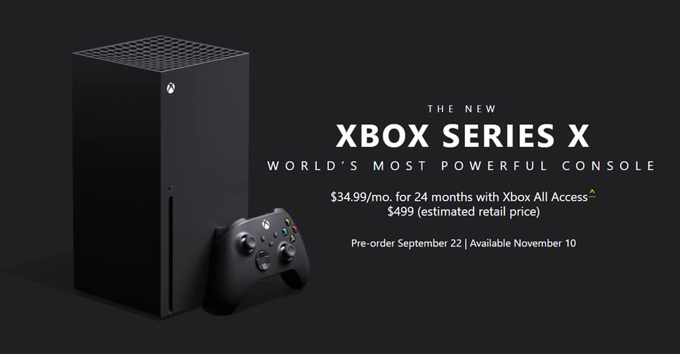 Microsoft เปิดเผยราคาและกำหนดการวางจำหน่าย Xbox Series X คอนโซลรุ่นใหม่ล่าสุดอย่างทางการแล้ว โดยจะเปิดรับจองในวันที่ 22 กันยายนนี้ ก่อนจะเริ่มวางจำหน่ายตั้งแต่วันที่ 10 พฤศจิกายน 2020 เป็นต้นไป ในราคา 499 ดอลล่าร์สหรัฐฯ หรือราว 15,690 บาท