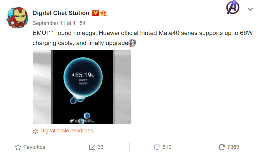 แหล่งข่าวในประเทศจีน อ้างว่า Huawei Mate 40 series จะสนับสนุนเทคโนโลยีชาร์จเร็ว 66W ขณะที่ Mate 30 Pro และ P40 Pro รองรับ SuperCharge 40W แต่ไม่มีรายงานว่าการชาร์จแบบไร้สายจะมีความเร็วขึ้นหรือไม่