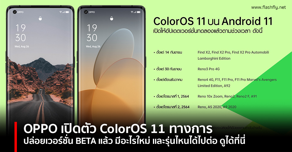 OPPO แบรนด์สมาร์ทโฟนชั้นนำ จัดงาน global launch เปิดตัว ColorOS 11 รูปแบบใหม่ผ่านทางการประชุมทางออนไลน์ พร้อมสร้างประวัติศาสตร์การเป็น OEMs แรกที่มอบการอัปเดต Android 11 รุ่นล่าสุดให้แก่ผู้ใช้ทั่วโลก ภายใต้คอนเซ็ปต์ “Make Life Flow” โดยฟีเจอร์ใน ColorOS 11 ยังคงฟีเจอร์ใน stock Android ที่ผู้ใช้ชื่นชอบ รวมถึงมอบ UI ที่สามารถปรับแต่งได้ให้แก่ผู้ใช้ OPPO ซึ่งการเปิดตัวครั้งนี้ นับว่าเป็นการเปิดตัวอย่างรวดเร็ว หลังจากการประกาศการเปิดตัว Android 11 ของ Google แสดงถึงการทำงานร่วมกันอย่างใกล้ชิดมากขึ้นระหว่างสองบริษัทอย่าง OPPO และ Google เพื่อให้ผู้ใช้สามารถจดจำวันเวลาในการเปิดตัวครั้งนี้ได้