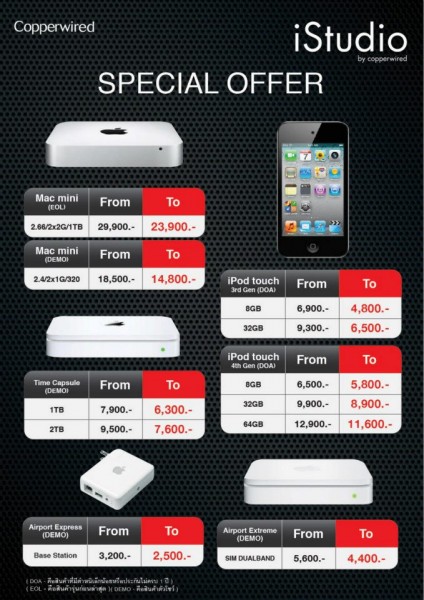 - Macbook Air Mid 2011 (Demo) : 13.3″ Ram4GB.HDD 128 ราคา 27,200.-