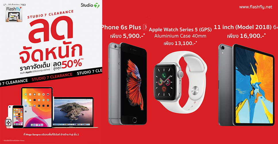 Studio 7 ลดจัดหนัก ราคาจัดเต็ม กับสินค้า Apple ตัวโชว์, สินค้าใหม่ตกรุ่น, สินค้ามีตำหนิ ลดสูงสุด 50% ให้คุณผ่อนสบาย 0% นานสูงสุด 10 เดือน เมื่อมียอดชำระตั้งแต่ 5,000 บาทขึ้นไป (KBank ผ่อน 0% สูงสุด 10 เดือน , UOB ผ่อน 0% สูงสุด 6 เดือน)