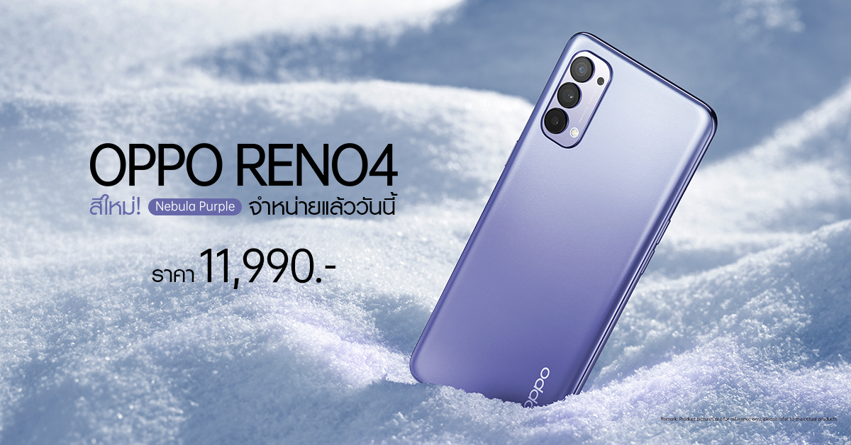 นับว่า OPPO Reno4 สี Nebula Purple เป็นสมาร์ทโฟนที่ผสมผสานกันระหว่างเทคโนโลยีและแฟชั่นได้อย่างลงตัว โดย OPPO Reno4 สี Nebula Purple พร้อมวางจำหน่ายแล้ววันนี้ในราคาเพียง 11,990 บาท พร้อมรับทันทีกระเป๋าสุดคูล OPPO x KLOSET&ETCETERA Limited Edition เมื่อซื้อที่ OPPO Brand Shop เท่านั้น อย่าช้ามีจำนวนจำกัด!