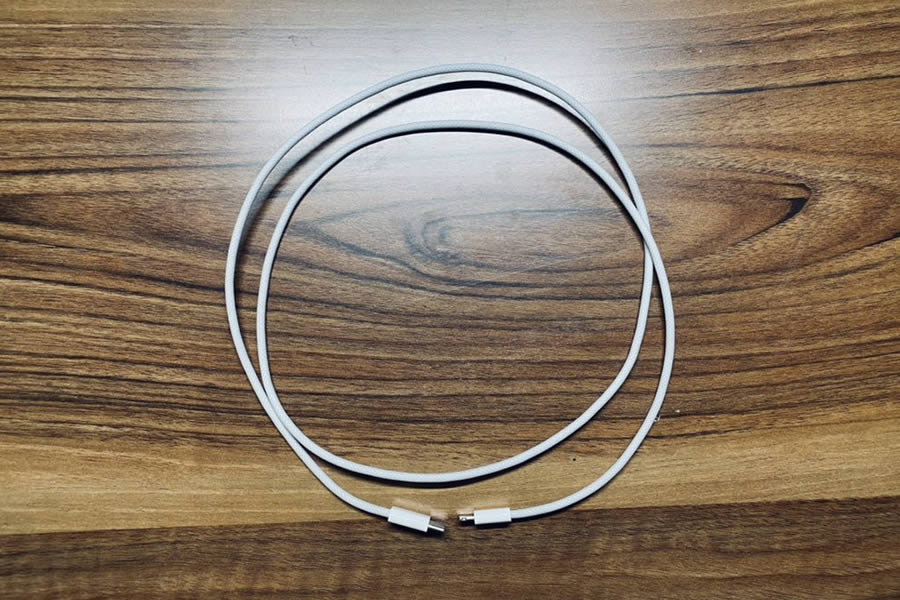 ล่าสุด Mr·white เจ้าของบัญชี Twitter @laobaiTD ได้ปล่อยภาพหลุดที่อ้างว่าเป็นสายชาร์จ iPhone 12 แบบสายถัก โดยปลายสายข้างหนึ่งเป็น Lightning และอีกปลายเป็น USB-C