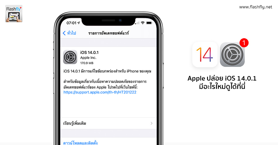 วันนี้ Apple ได้ปล่อย iOS 14.0.1 เวอร์ชั่นใหม่ล่าสุดออกมารายการอัพเดทนี้มีการแก้ไขข้อบกพร่องสำหรับ iPhone ของคุณ แก้บั้ก Widgets,ตั้งค่า Default app และอื่นๆ ดูได้ที่นี่ดังนี้