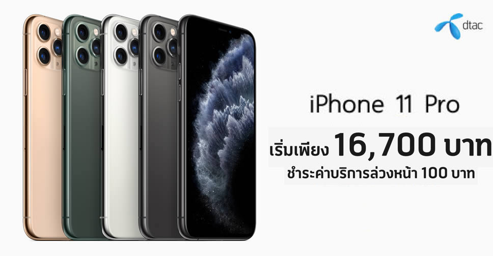 อีกหนึ่งโปรโมชั่นค่าเครื่องราคาพิเศษของ iPhone 11 Pro ที่คราวนี้มาจากค่าย Dtac ซึ่งได้มีการนำ iPhone 11 Pro มาจัดโปรโมชั่นค่าเครื่องเหลือเริ่มต้นเพียง 16,700 บาท ที่สำคัญคือชำระค่าบริการล่วงหน้าเพียง 100 บาทเท่านั้น ส่วนจะมีเงื่อนไขเพิ่มเติมอย่างไรบ้างนั้น ลองมาดูกันเลยดีกว่า