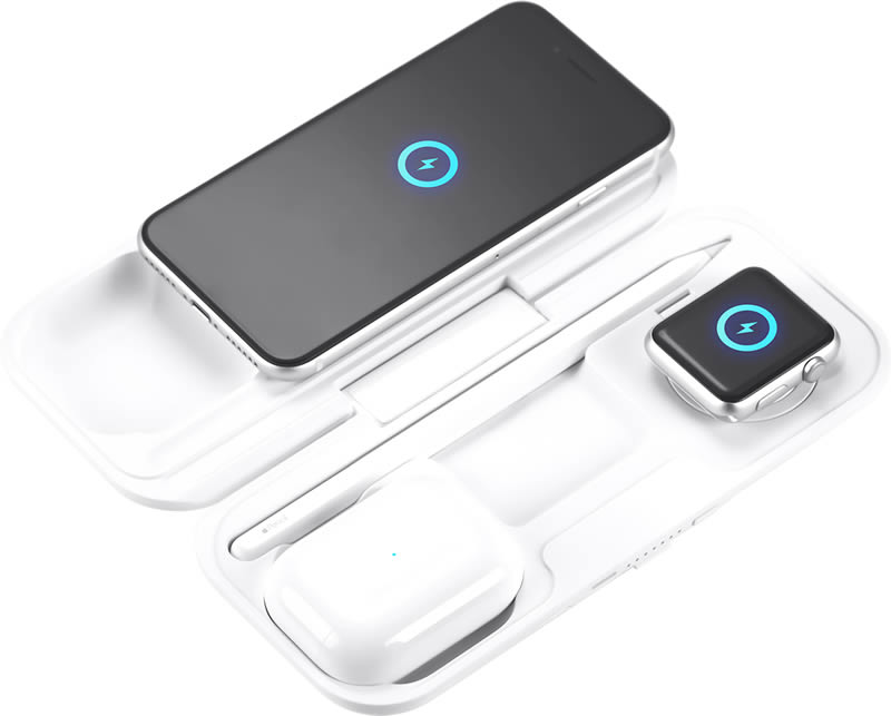 MOMAX Airbox อุปกรณ์ชาร์จแบตสำรอง หรือ Power Bank ที่ออกแบบมาสำหรับอุปกรณ์ส่วนใหญ่ของ Apple รองรับการชาร์จแบบไร้สายให้กับ Apple Watch, iPhone 8 หรือรุ่นใหม่กว่า, AirPods 2 หรือ AirPods Pro รวมถึงสมาร์ทโฟนทุกรุ่นที่รองรับการชาร์จไร้สายของ Qi และยังชาร์จแบบใช้สายให้กับ iPad ได้อีกด้วย