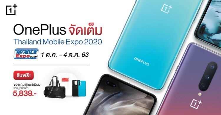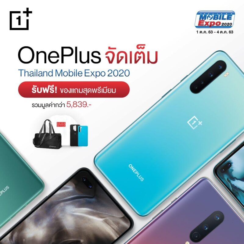 OnePlus จัดเต็มภายในงาน Thailand Mobile Expo 2020 ณ ศูนย์ประชุมไบเทค บางนา ขนทัพสมาร์ทโฟน OnePlus ทุกรุ่น ไม่ว่าจะเป็น OnePlus 7T Pro, OnePlus 7T Pro McLaren Edition, OnePlus 8 Series กับราคาใหม่ สุดคุ้ม และรุ่นใหม่ล่าสุดอย่าง OnePlus Nord พร้อมรับของแถมสุดพรีเมียม จากแต่ละช่องทางการจำหน่ายอีกมากมาย ในระหว่างวันที่ 1 – 4 ตุลาคม 2563