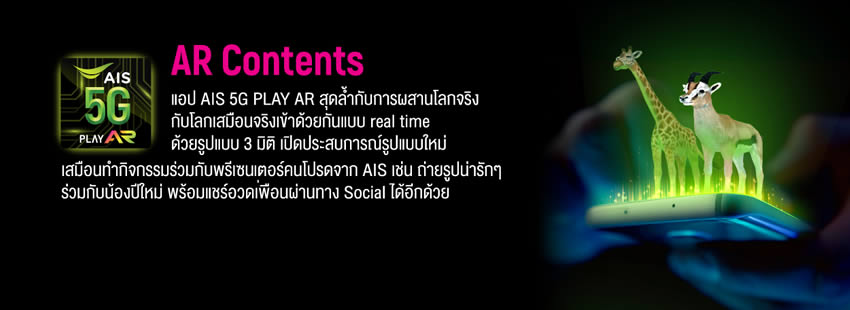 พิเศษสุด!! เมื่อเลือกแพ็กเกจรายเดือน 1199 ขึ้นไป สามารถใช้งานดาต้าได้ไม่จำกัด แถมฟรี!! ซิมการ์ด พร้อมดาต้า 50GB บริการ AIS 5G PLAY AR นาน 12 เดือน, AIS 5G PLAY VR นาน 12 เดือน , AIS 5G CLOUD GAME นาน 3 เดือน และโทรฟรีผ่านในเครือข่าย AIS ได้ไม่จำกัด อีกทั้งยังได้รับอุปกรณ์ AIS PLAY VR ฟรี!!