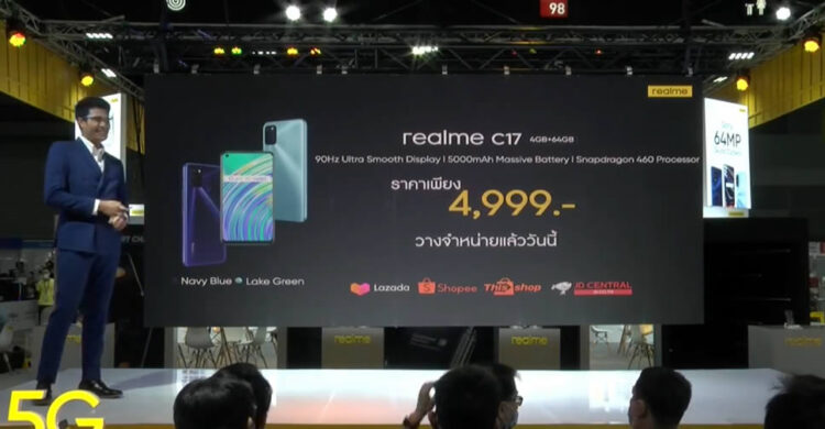 realme เปิดตัสมาร์ทโฟนรุ่นใหม่ realme C17 ในงาน Thailand Mobile Expo 2020 ณ ศูนย์การประชุม ไบเทค บางนา มาพร้อมดีไซน์โดดเด่น ด้วยแรงบันดาลใจจาก Cat’s Eye หรืออัญมณีล้ำค่า “เพชรตาแมว” ให้ความรู้สึกแวววาว น่าค้นหา เปรียบได้กับความแวววาวของทะเลสาปและพื้นผิวมหาสมุทร