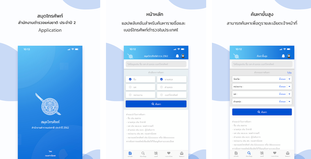 โดยในแอปปลิเคชั่นดังกล่าวจะบรรจุข้อมูลเบอร์โทรศัพท์ของข้าราชการตำรวจ ระดับ ผู้บัญชาการตำรวจแห่งชาติ จนถึง สารวัตร จากทุกกองบัญชาการทั่วประเทศ เพียงแค่พิมพ์ชื่อหรือสถานีตำรวจที่ต้องการทราบ ในระบบค้นหา จะปรากฏชื่อและเบอร์โทรศัพท์ของนายตำรวจที่ต้องการติดต่อได้ตลอดเวลา ทั้งนี้ประชาชนสามารถดาวน์โหลดได้ฟรี ได้ที่แอปปลิเคชั่นว่า “Police Phonebook – สมุดโทรศัพท์ตำรวจ” ก็สามารถใช้งานได้ทันที